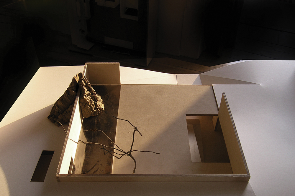 The program of the cellar is organized under the ground, opening to a yard around of 30 x 30 m. This enclosure draws out an outer space protected from the wind, creating shadows and allowing the retention of humidity.