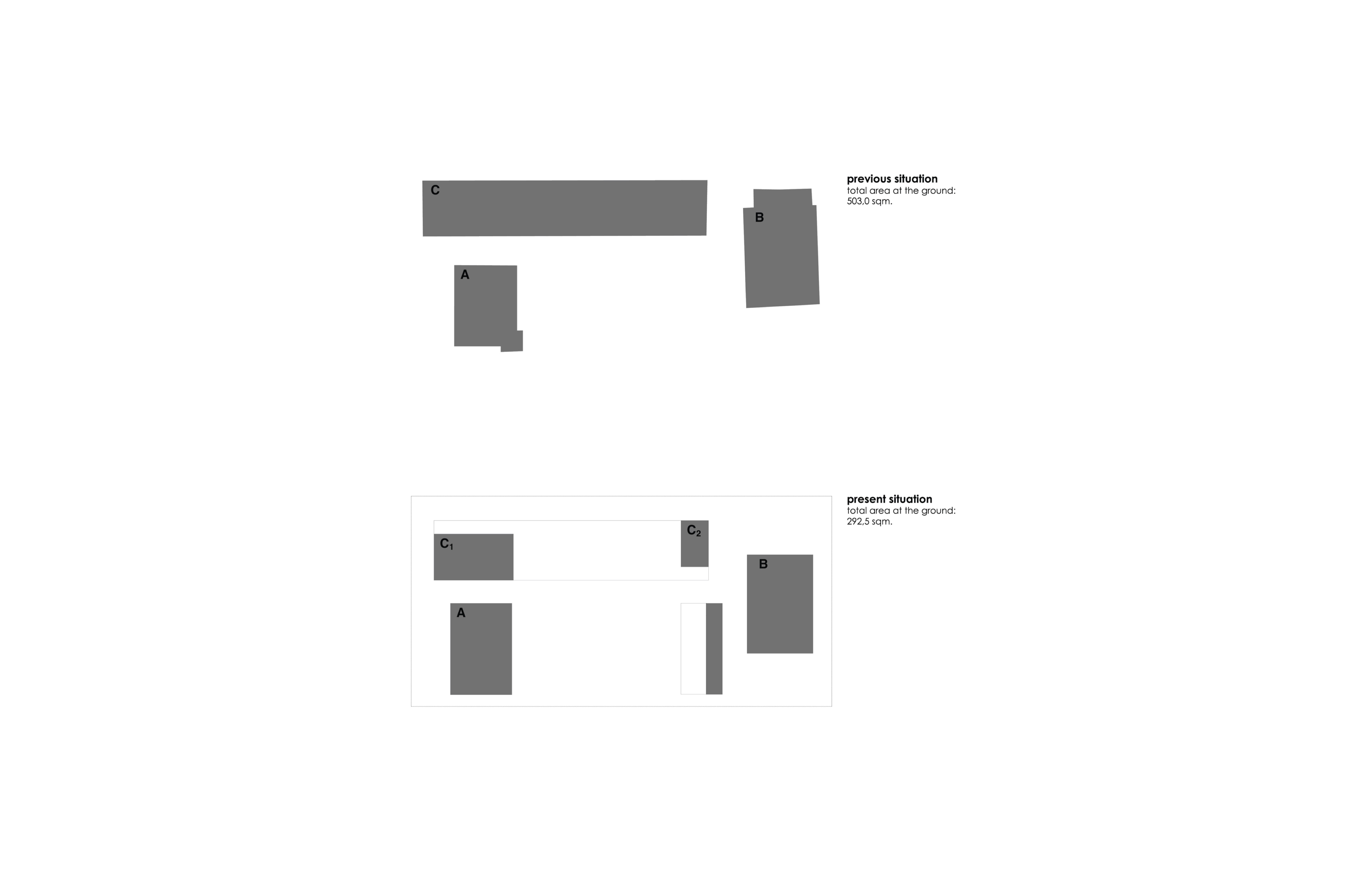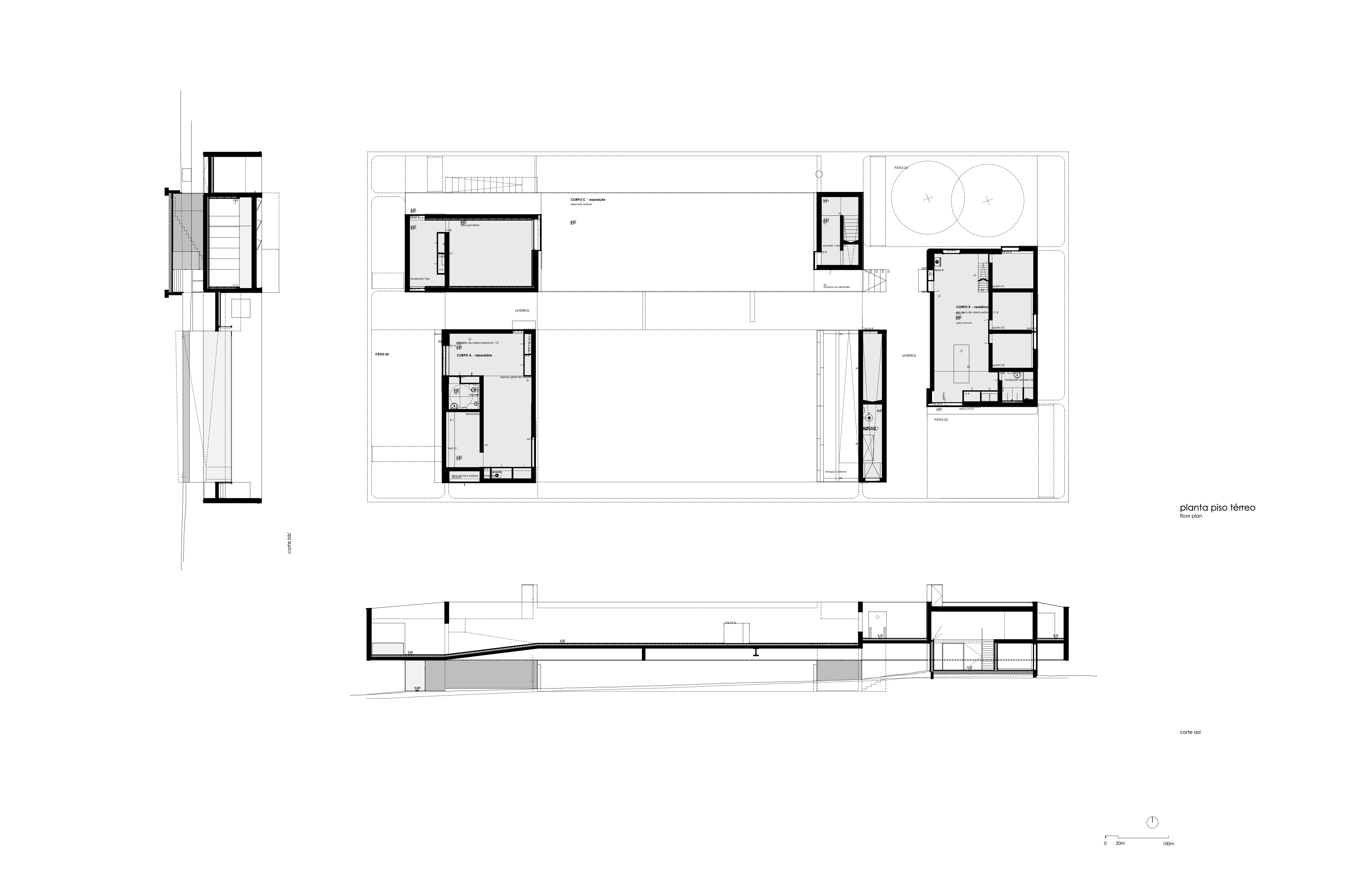 In a protected area, classified as Natura 2000 Network, the intervention looks for to organize the functional program transforming the three existing buildings in order to allow biggest area for the requested program, with lesser occupation of the ground. The buildings acts as elements of support of a structure that is raised above the land and keeps suspended, organizing a set of patios and pathways between the several functional parts, allowing to preserve the ground intact and permeable.
